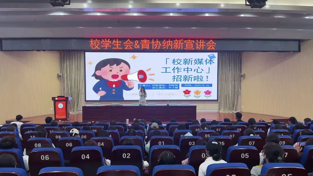 金风送爽,万象更新,9月16日至17日,学校主要学生组织举办的两场纳新宣讲活动在1号行政楼报告厅圆满落幕,近千名同学参加活动。