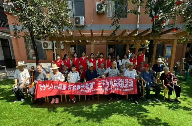 2025年7月4日,山东医学高等专科学校“‘医’脉相承、心‘乡’远方”志愿服务队走进临沂市罗庄区韦姜屯社区老年公寓,在指导老师的带领下开展关爱银龄健康-暑期“三下乡”社会实践活动。这群年轻的医学生,怀揣着稚嫩却赤诚的医者之心,为乡村“银发族”们送去了别样的健康关怀与温暖陪伴。
