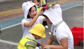 活动全程,托育专业的志愿者们充分发挥专业优势,将儿童发展心理学、幼儿教育学等理论知识融入活动各环节。在“巧手制作”环节,志愿者会向家长讲解如何通过手工锻炼孩子的精细动作;在“运动闯关”环节,结合不同年龄段孩子的运动发展特点,指导家长科学陪伴孩子运动。不少家长表示,此次活动不仅让孩子收获了快乐与成长,也为自己提供了实用的育儿指导。“以前带孩子参加活动,只是觉得热闹,这次不一样,志愿者会教我们怎么通过游戏培养孩子的能力,比如在‘数字通关’时,志愿者告诉我们可以用生活中的物品帮孩子认数字,特别实用。”市中区家长刘女士说道。对于志愿团成员而言,此次“三下乡”活动也是一次宝贵的实践历练。志愿团负责人方同学表示:“在‘雨天’主题日的绘本环节,有个孩子注意力不集中,我用课堂上学的‘情景引导法’,让他扮演故事里的小动物,很快就吸引了他的注意力,这种将理论转化为实践的过程,让我对专业知识有了更深的理解。”