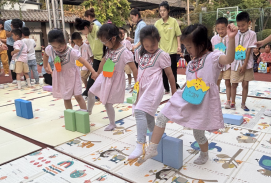 “活力四射上小学”主题日:《一年级》律动模拟课堂纪律,“数字通关”增强数学能力,制作“小学心愿卡”、开展“热血闯关”运动,助力幼小衔接。