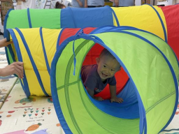 “小蚂蚁运西瓜”主题日:通过模仿小蚂蚁律动锻炼孩子协调性,讲述《小蚂蚁运西瓜》引导认知,亲子协作用塑料小盘子、吸管、颜料、彩带制作西瓜扇子并用西瓜扇子运送小球,开启探索之旅。