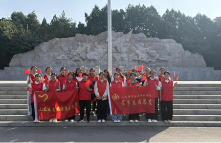 为庆祝中华人民共和国成立76周年,深切缅怀革命先烈,弘扬爱国主义精神,2025年10月1日上午,山东医学高等专科学校药学系志愿者受邀前往济南革命烈士陵园,参加庄严的国庆日祭奠活动。