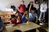 第二关“障碍穿行”,需手脚并用地匍匐过障碍,拾取平衡木两侧的食材放入小篮子;