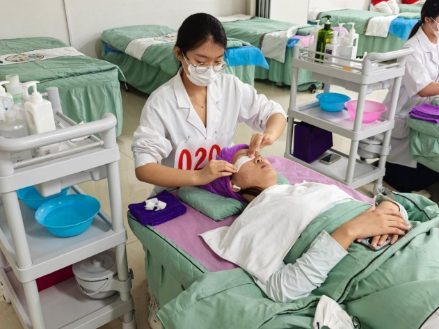 大赛聚焦理论与实践融合,设立美容护肤、化妆、面部咨询与美学设计三个赛项。开幕式上,孙书记鼓励选手们弘扬工匠精神、勇担时代使命,赛场上选手们凭借扎实的理论基础和娴熟的操作技能,展现出优秀的专业素养。评委鼓励选手以专业为翼,持续学习,成为行业创新发展的主力军。