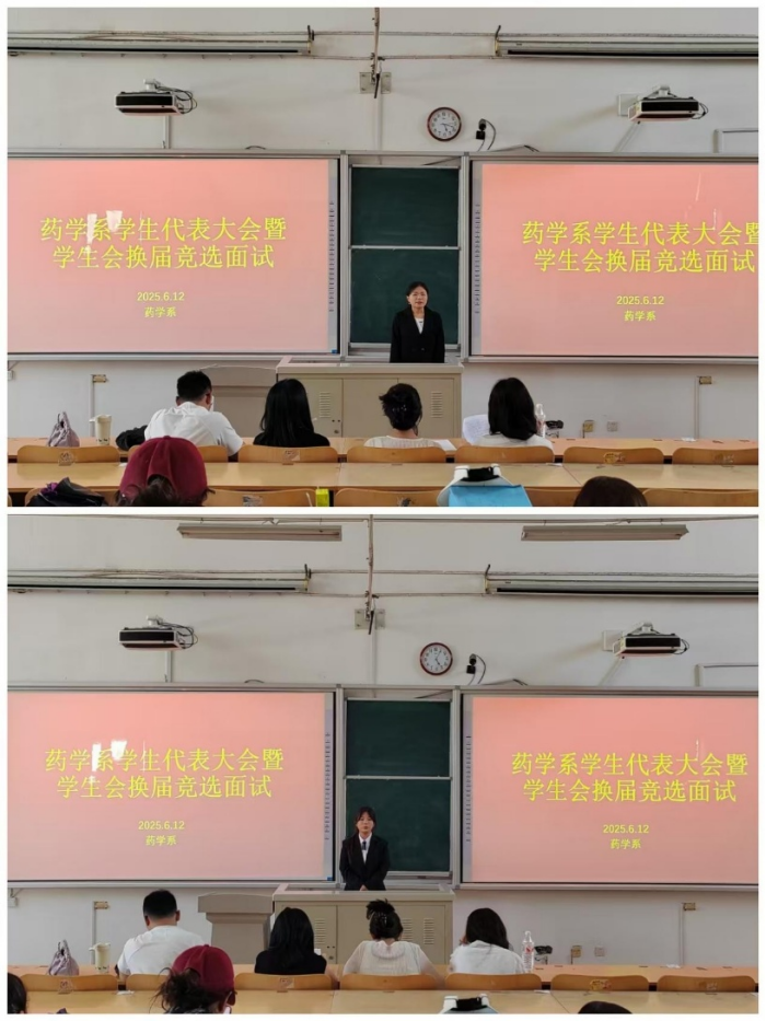 6月12日下午,药学系学生代表大会暨学生会换届竞选在2406教室举行,团总支书记、各班辅导员、学生代表及全体学生会成员出席。