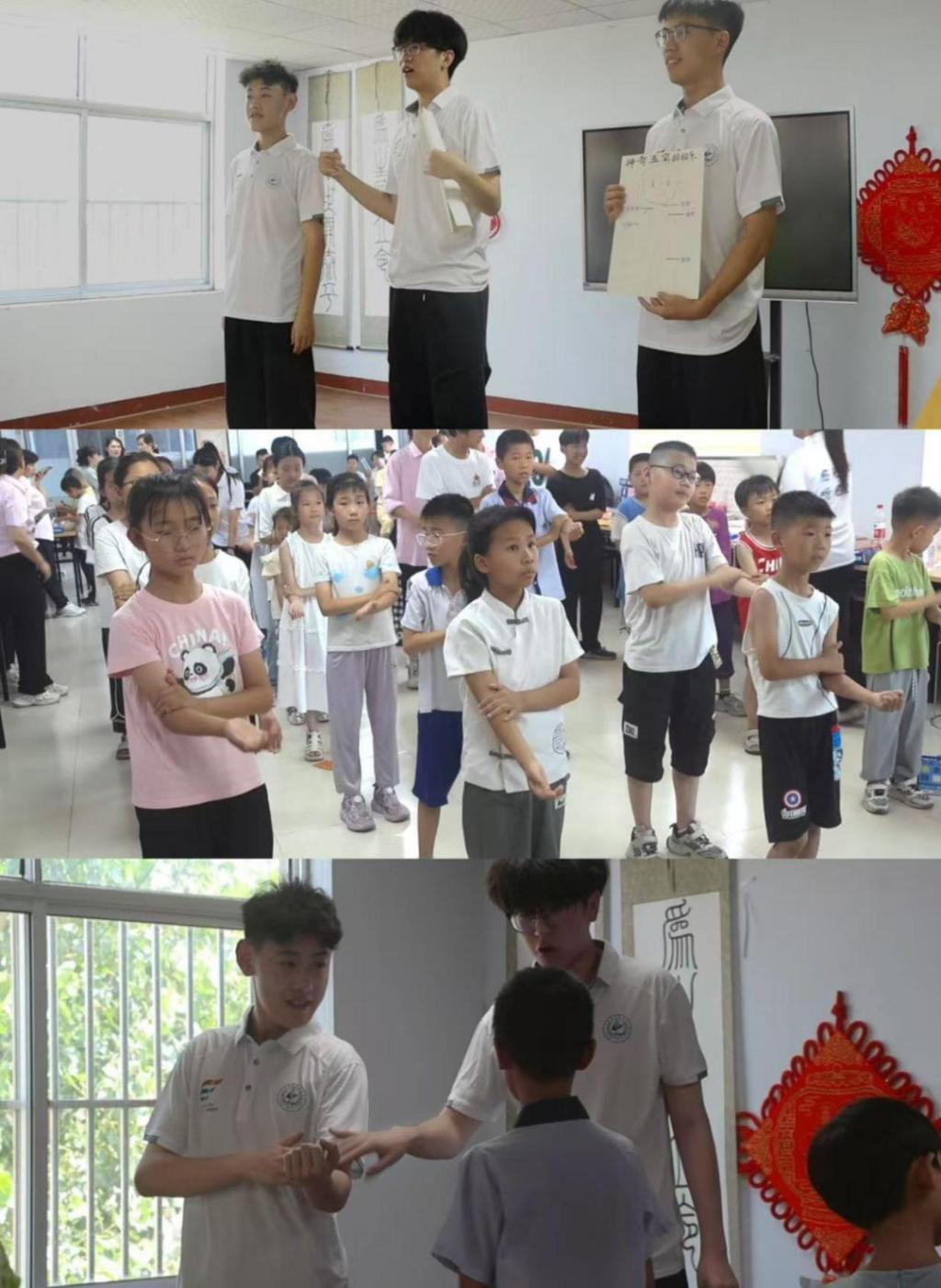 紧接着,“中医拍五窝”活动巧妙融入了传统养生智慧。志愿者们带领孩子们,跟着节奏轻轻拍打左肘窝、右肘窝等身体部位。在重复练习、促进血液循环的过程中,志愿者们细心提醒动作要轻柔,并注意避开颈部。孩子们在放松身心的同时,也近距离感受到了中医文化的独特魅力。志愿者们还穿插了简单易懂的原理讲解,将健康知识自然地融入互动体验。